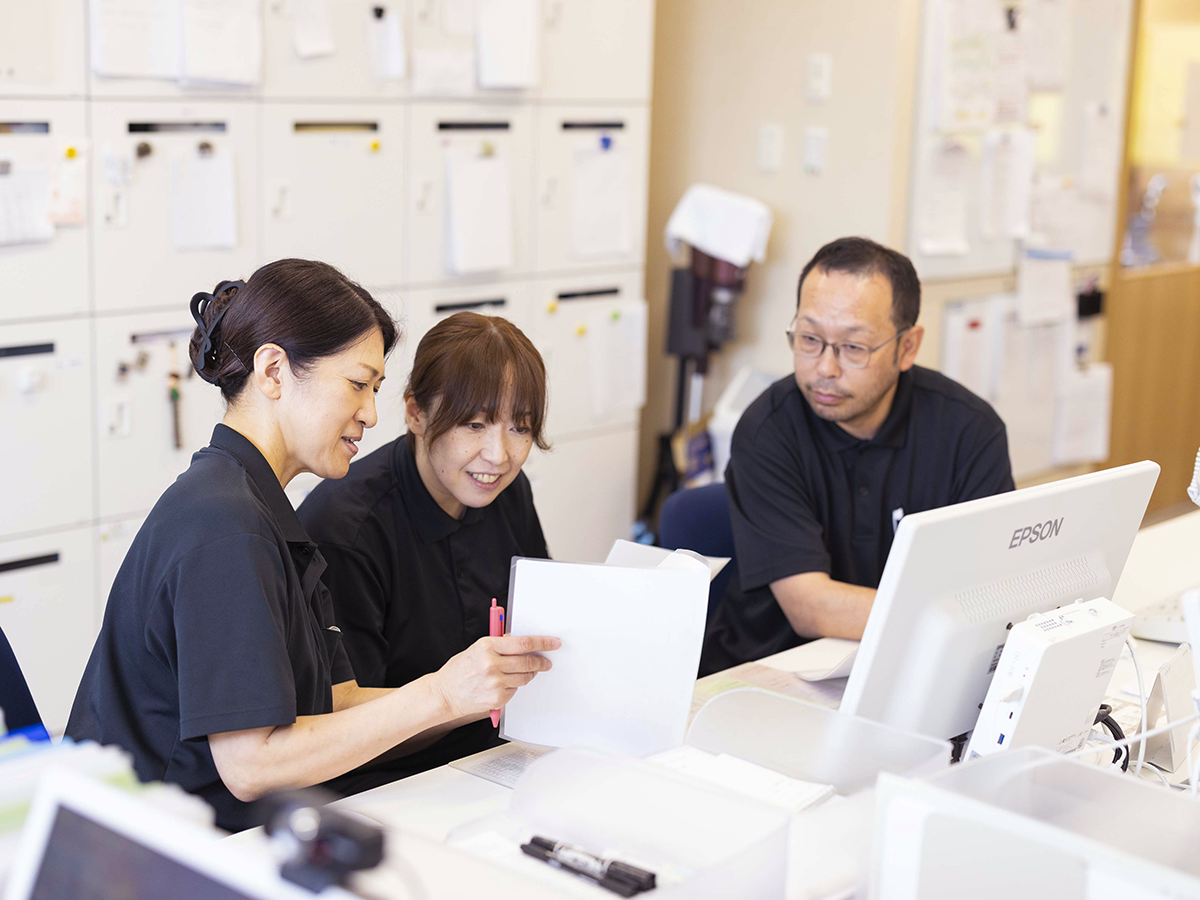 | 研修制度 | 入職直後は新人職員研修から始まりOJTを実施しています。また内部の研修も計画的に行っており、外部の研修も経験年数に応じて参加していただきます。 |
