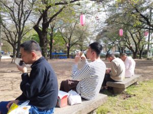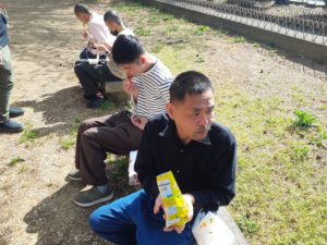 4月17日に外出で華蔵寺公園に桜を見に行きました。お花見の準備として利用者様とスマークへお菓子やドーナツを購入しに行きました。皆様楽しそうに選んでおり、何を買おうか悩まれている方もいらっしゃいました。お買い物を済ませ華蔵寺公園に移動し、日当たりの良い場所で購入した物を美味しそうに食べられておりました。桜はかなり散ってしまっていましたが、所々に満開に近い木もあり花見を楽しまれていました。食後は華蔵寺公園のアトラクションで遊びました。皆様満足そうにして帰りの車では「楽しかった」「また行きたい」と楽しそうに話されており、企画して良かったと感じました。