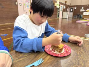 その後は、みんなで作ったケーキやポップコーンを食べながら、たくさんお話をして、笑顔あふれる楽しいクリスマス会となりました。